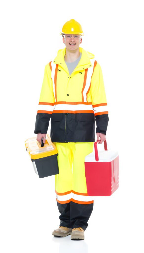 High-visibility, durable uniforms designed to meet workplace safety and protection standards.